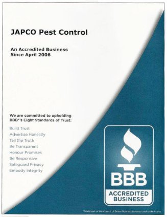 JAPCO Pest Control has been a BBB Accredited Business since 2006. For more information on JAPCO and their comprehensive line of services, go to japco.ca or call 403-242-2467 in Calgary, 780-462-0804 in Edmonton, or 306-242-0193 in Saskatchewan.